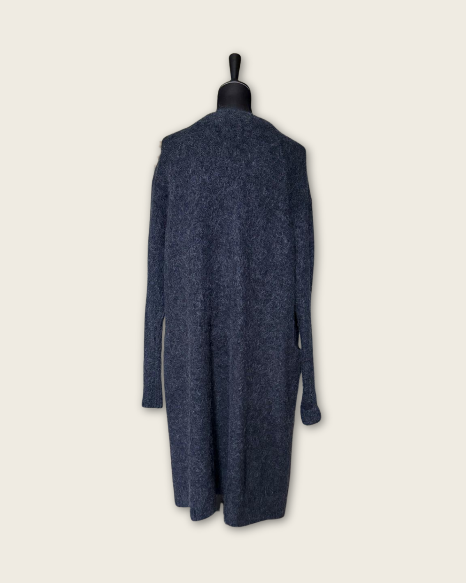 Chaleureux et résolument moderne, ce gilet long gris Acne Studios incarne parfaitement l’esthétique minimaliste et contemporaine de la maison scandinave. Confectionné en mohair, il offre une texture douce et enveloppante, idéale pour composer des silhouettes élégantes et confortables.