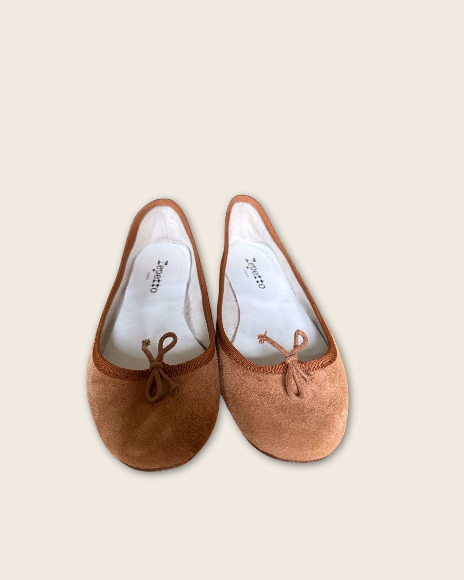Élégantes et intemporelles, ces ballerines Repetto en daim camel pointure 38 incarnent tout le raffinement et le savoir-faire emblématique de la maison française. Véritable essentiel du vestiaire féminin, la ballerine Repetto séduit par sa ligne épurée et sa silhouette délicate.