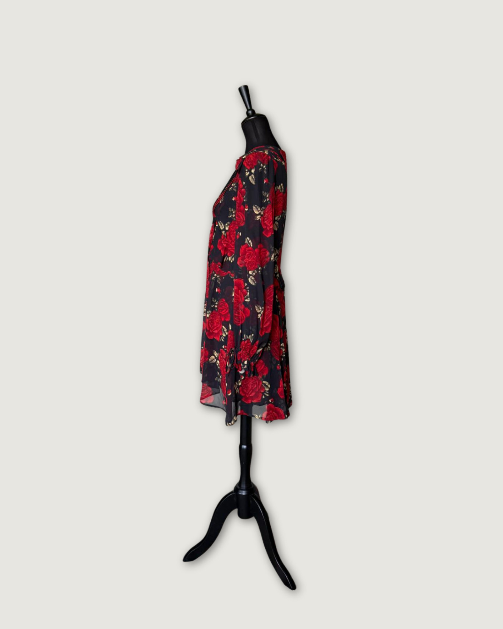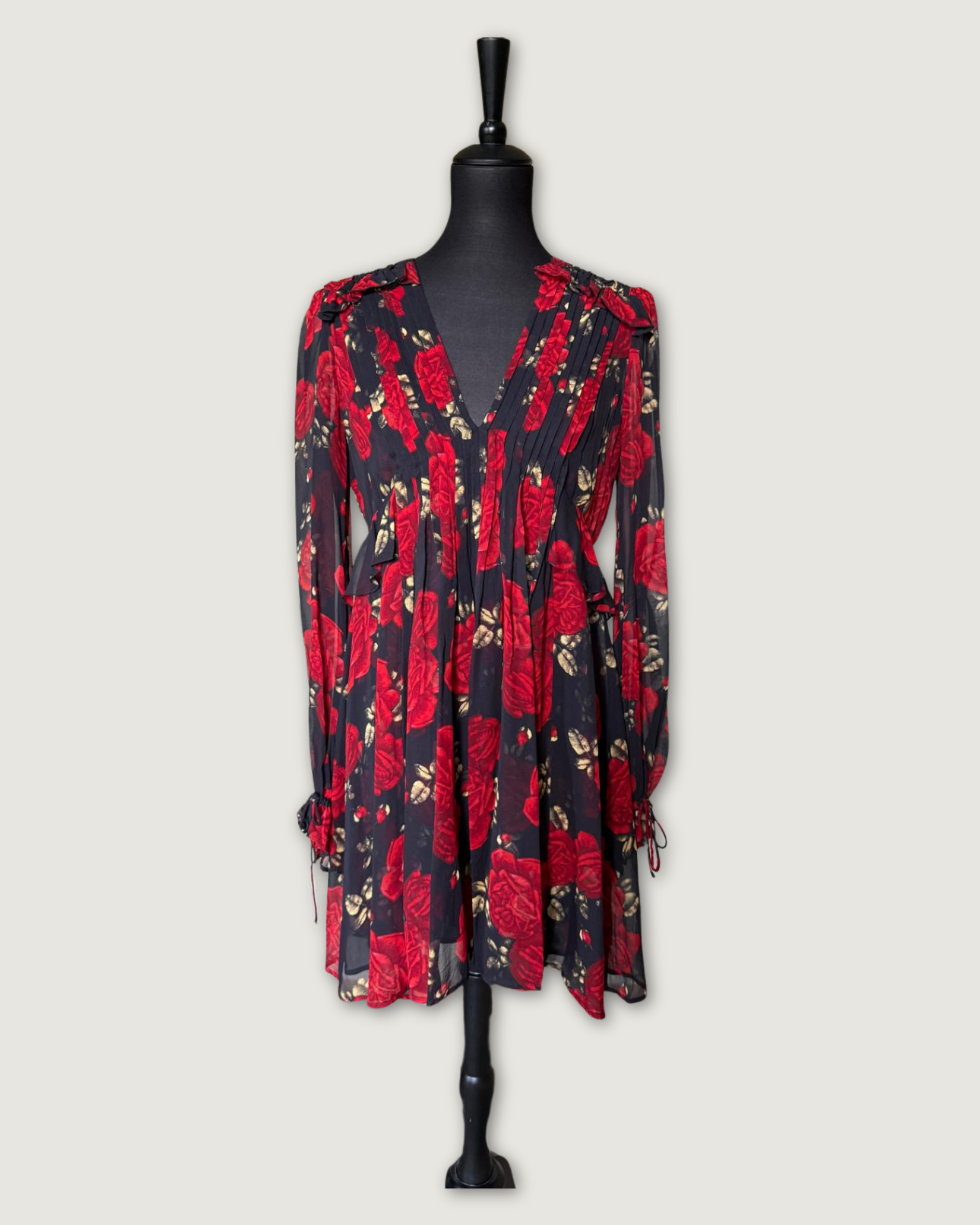 THE KOOPLES - ROBE SOIE IMPRIMEE FLEURS NOIR/ROUGE T.2